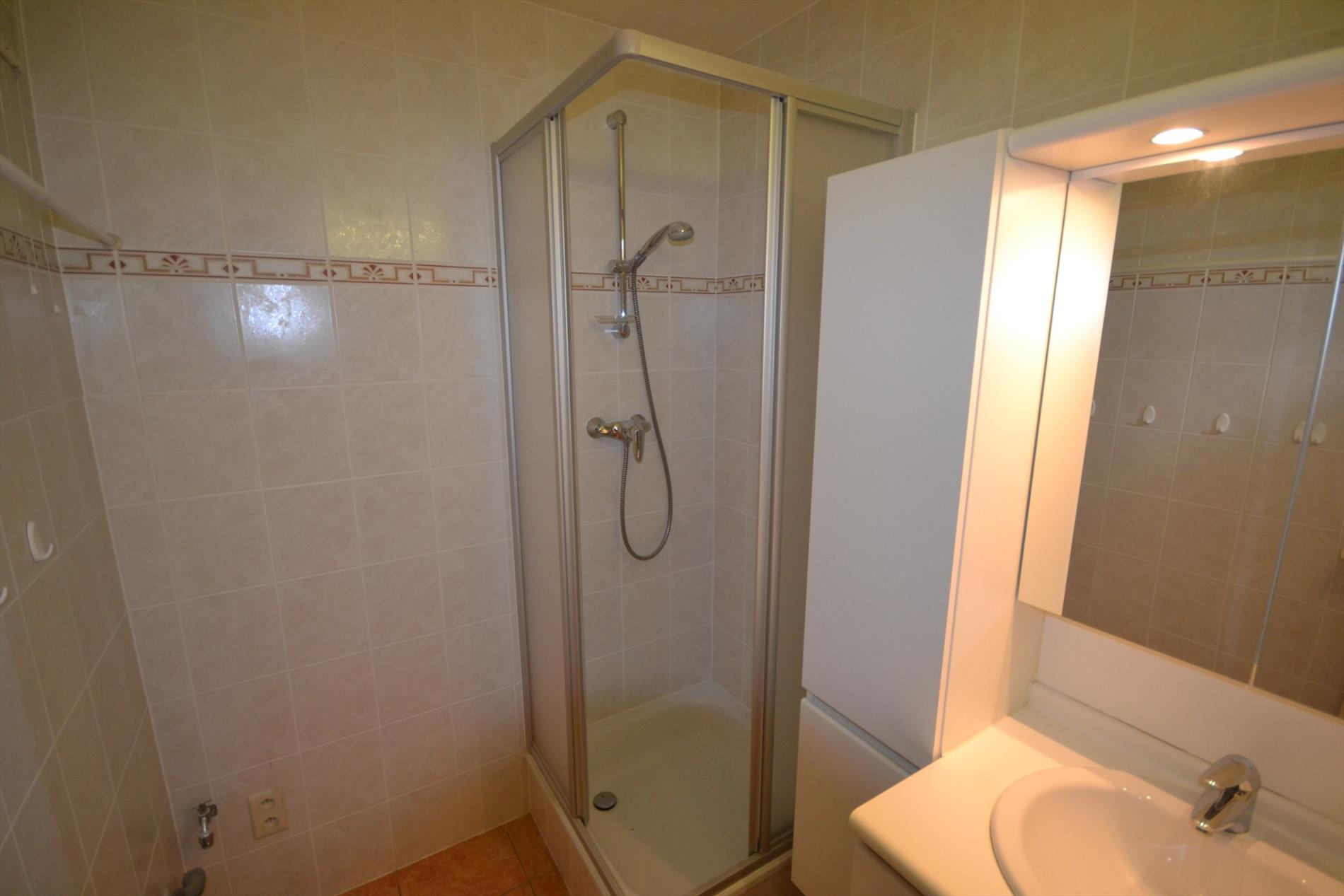 Het appartement bestaat uit : inkom, ruime living met vernieuwde ramen, keuken, afzonderlijk toilet , vernieuwde badkamer met douche en aansluiting voor wasmachine, 2 slaapkamers waarvan één met terrasje. Kelder