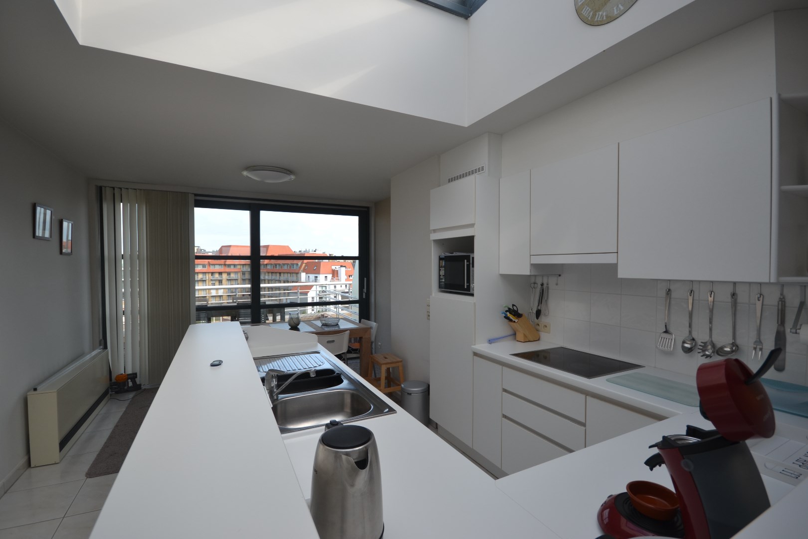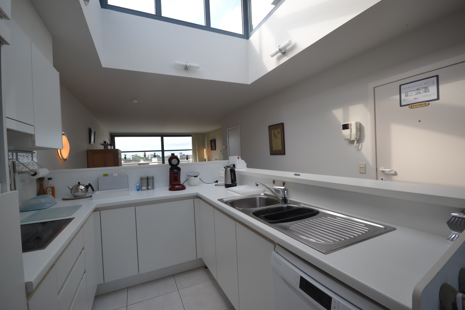 Zonnig en centraal gelegen gemeubeld duplex appartement met lift tot beide verdiepingen en 3 ruime zonnige terrassen. Je hebt altijd zon op één van de terrassen met zicht op de duinen en de zee. De ruime living heeft een open keuken met een aangrenzende eetplaats. Er zijn drie slaapkamers, twee badkamers en twee afzonderlijke toiletten. De berging is voorzien van was en droogkast. Een garagebox kan worden bijgekocht. Garage N°101 met elektrische poort : prijs 58.000 euro (5.53m op 2.95m)