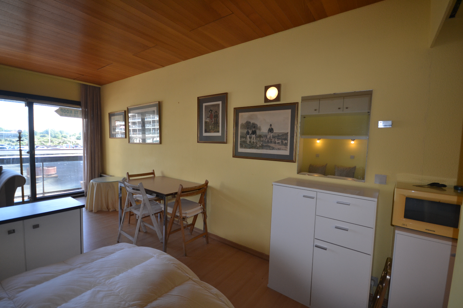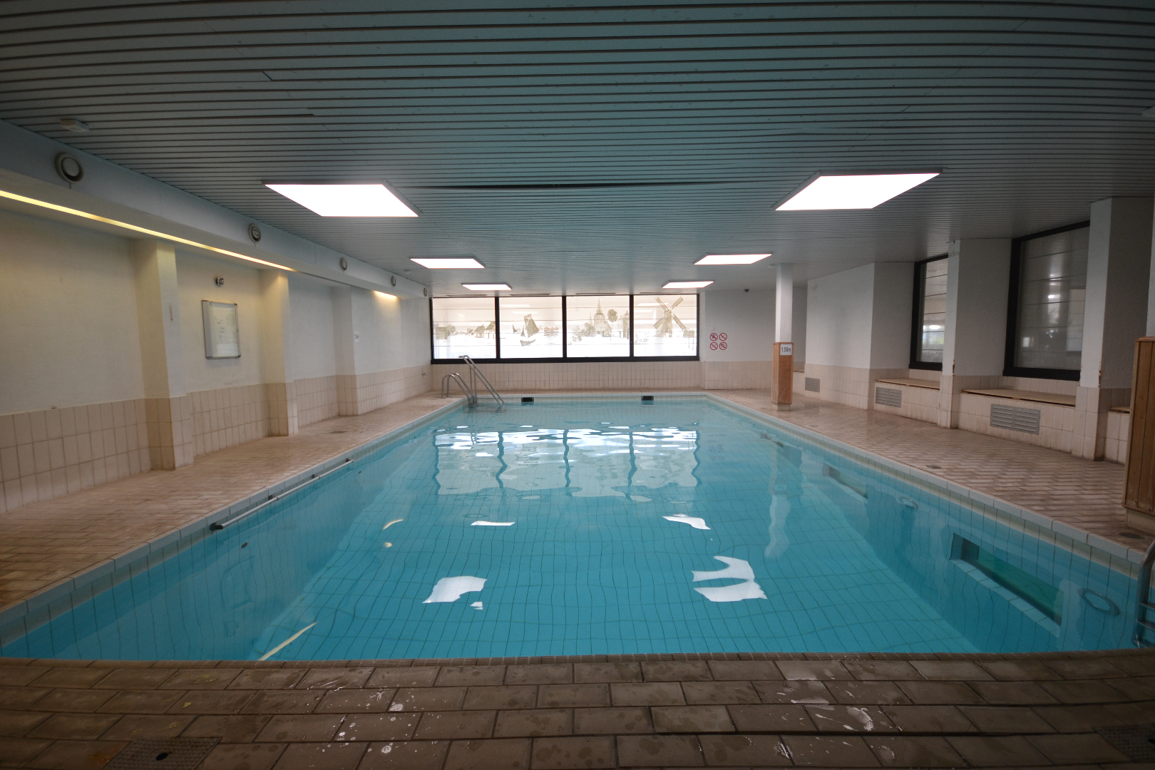 Ideale studio zonnige studio aan de zeedijk van Oostduinkerke. Absolute troef is het binnenzwembad waar men winter en zomer naar believen kan zwemmen. Algemene kosten 355 euro per trimester .